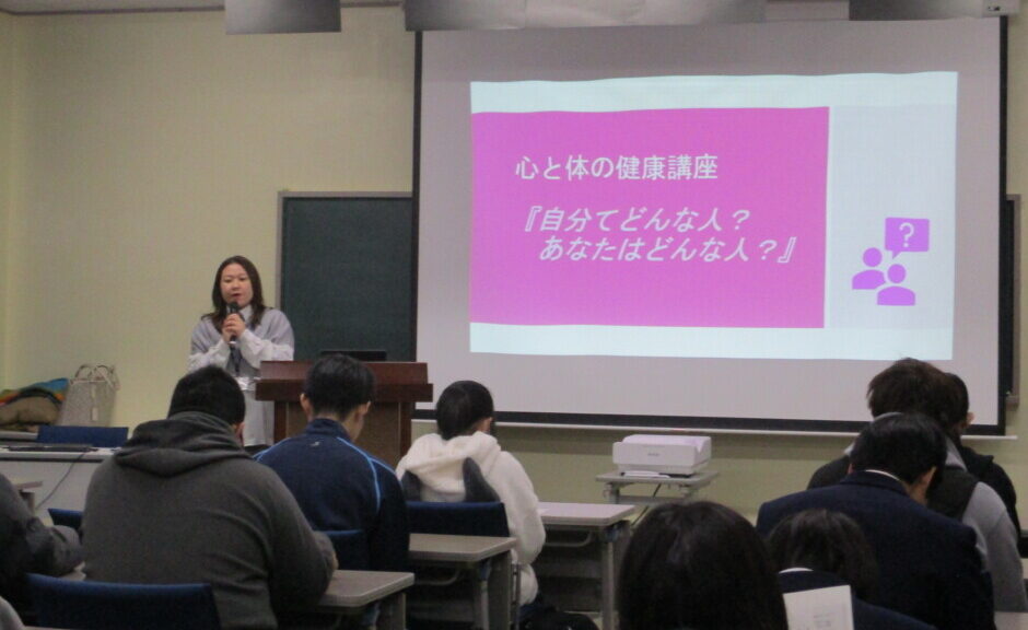 1月30日(金)3、4限目に、1年次対象の「心と体の健康講座」第4弾を実施しました。荒谷香奈スクールカウンセラーを講師に、自分と相手の価値観の違いや価値観を人に押しつけていないか等について学習しました。また、相手に柔らかく言葉を伝える「Iメッセージ」や「言葉に感情を混ぜて話すこと」を学び、ペア学習では言い方を考えて相手に気持ちを伝える練習に取り組みました。